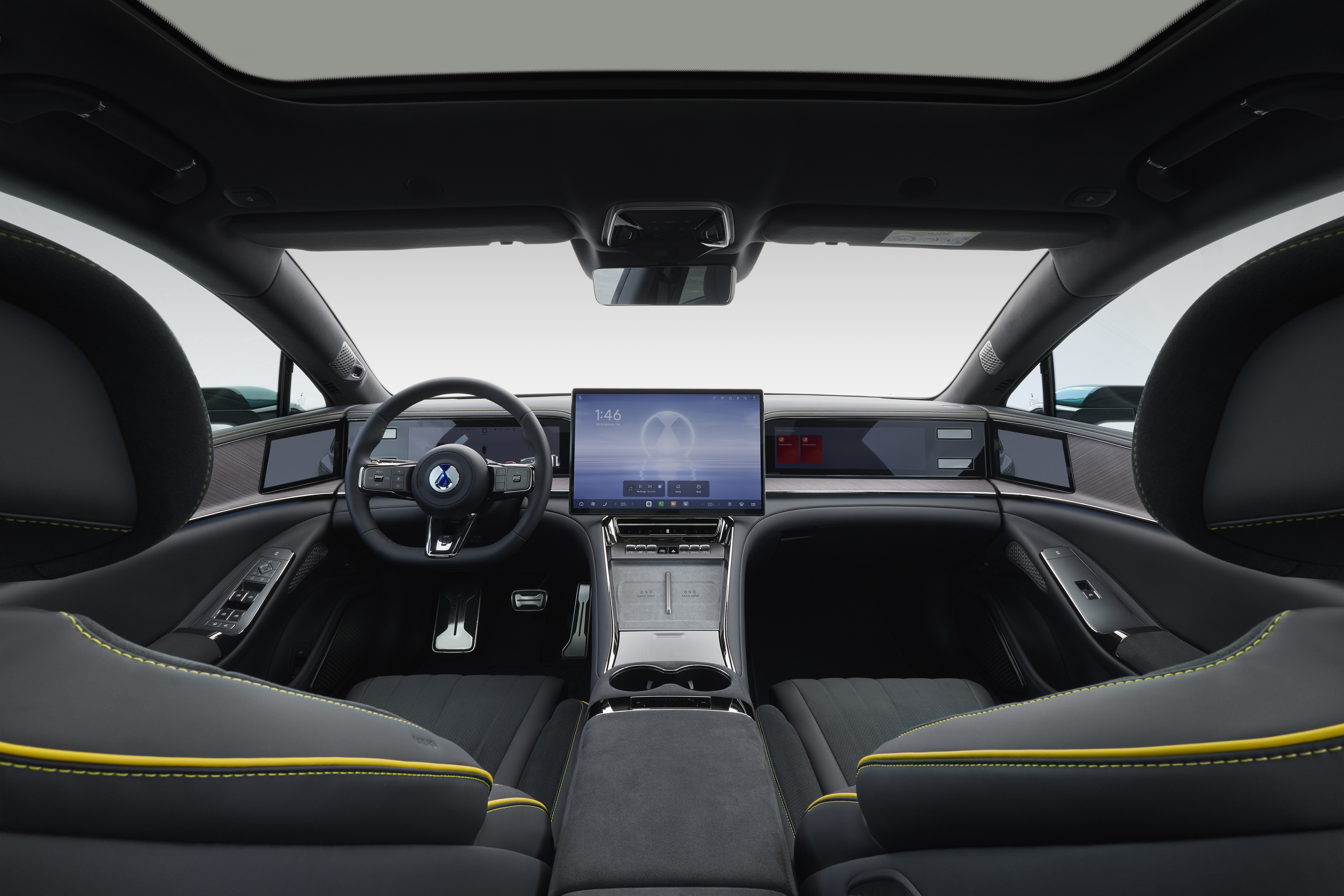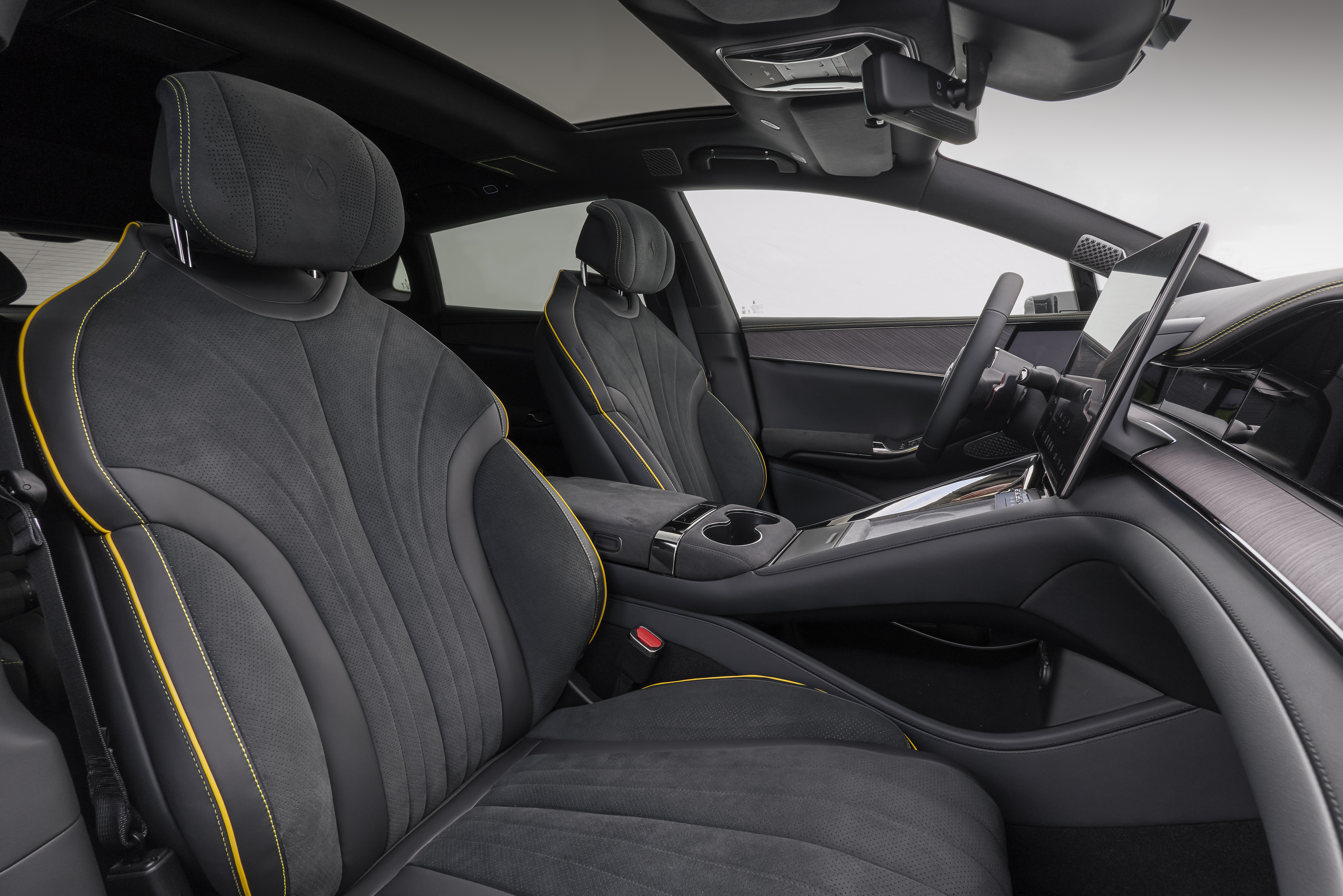 L'habitacle dispose également d'un compartiment réfrigéré pouvant refroidir son contenu jusqu'à -6 °C (alimenté par le compresseur de climatisation de la voiture, ce qui élimine le risque de bruit supplémentaire dans l'habitacle), d'un système d'air frais à quatre zones et d'un toit panoramique en verre, équipé d'un pare-soleil qui garantit le confort de l'habitacle par temps chaud. Deux socles de recharge sans fil de 50 W pour smartphones sont disponibles sur la console centrale, au-dessus d'un espace de rangement supplémentaire et devant deux porte-gobelets, et un socle supplémentaire de 50 W est prévu pour les passagers arrière.