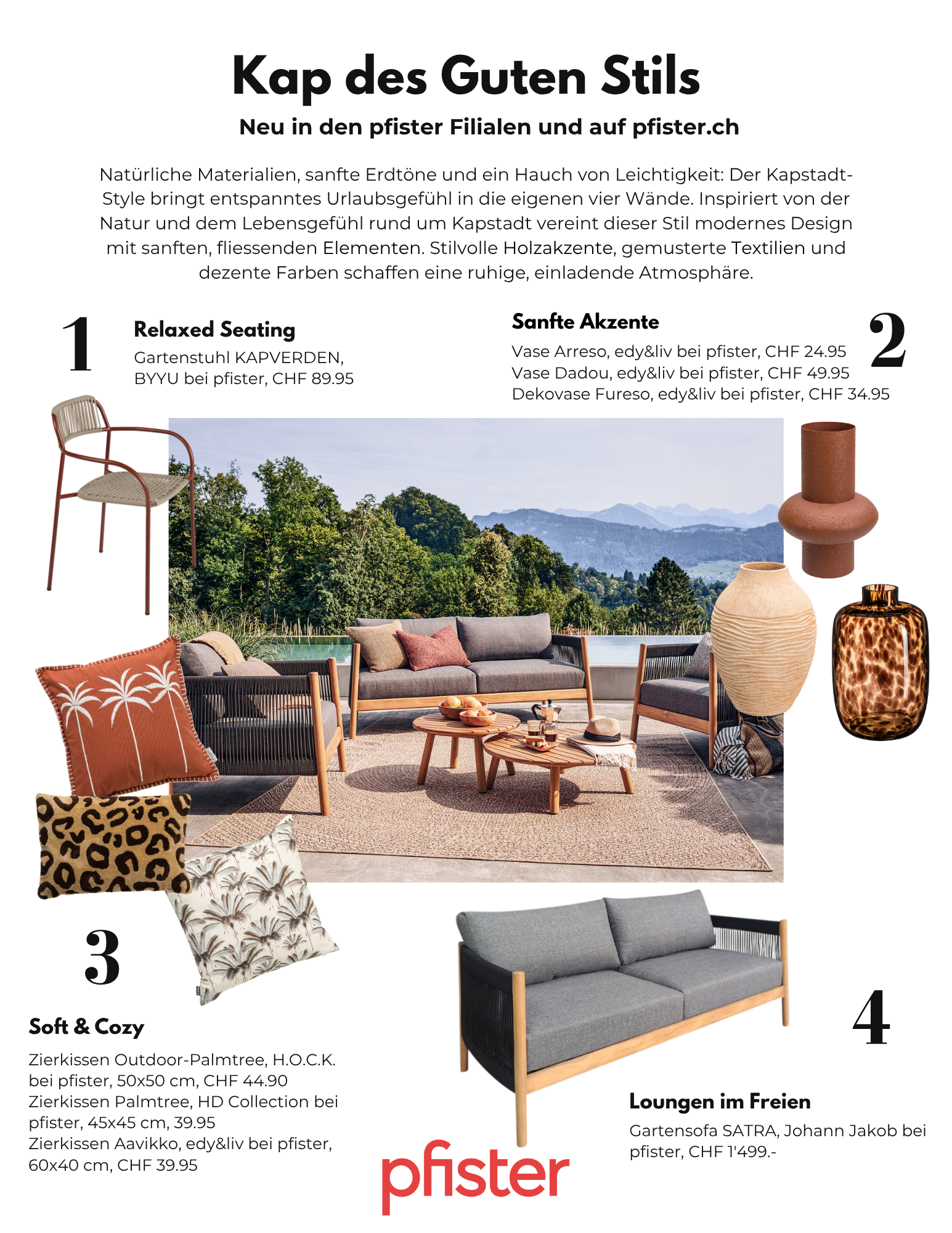 pfister ist das führende Schweizer Möbelhaus und bietet eine breite Palette hochwertiger Einrichtungsgegenstände und Wohnaccessoires. Mit 18 Filialen in der Schweiz und einem umfangreichen Online-Angebot gehört pfister zu den Top-Online-Anbietern im Einrichtungsbereich. Seit seiner Gründung im Jahr 1882 entwickelt sich pfister kontinuierlich weiter, um seinen Kundinnen und Kunden ein bestmögliches Einkaufserlebnis zu bieten. In den letzten drei Jahren hat das Unternehmen mehr als 30 Millionen Franken in die Modernisierung seiner Filialen und die Digitalisierung investiert und rund 100 neue Arbeitsplätze geschaffen. Als erster Anbieter in der Branche hat pfister zudem das «pfister AI-Lab» eingeführt und nutzt künstliche Intelligenz, um auf pfister.ch vielfältige Hintergrundbilder zu generieren.