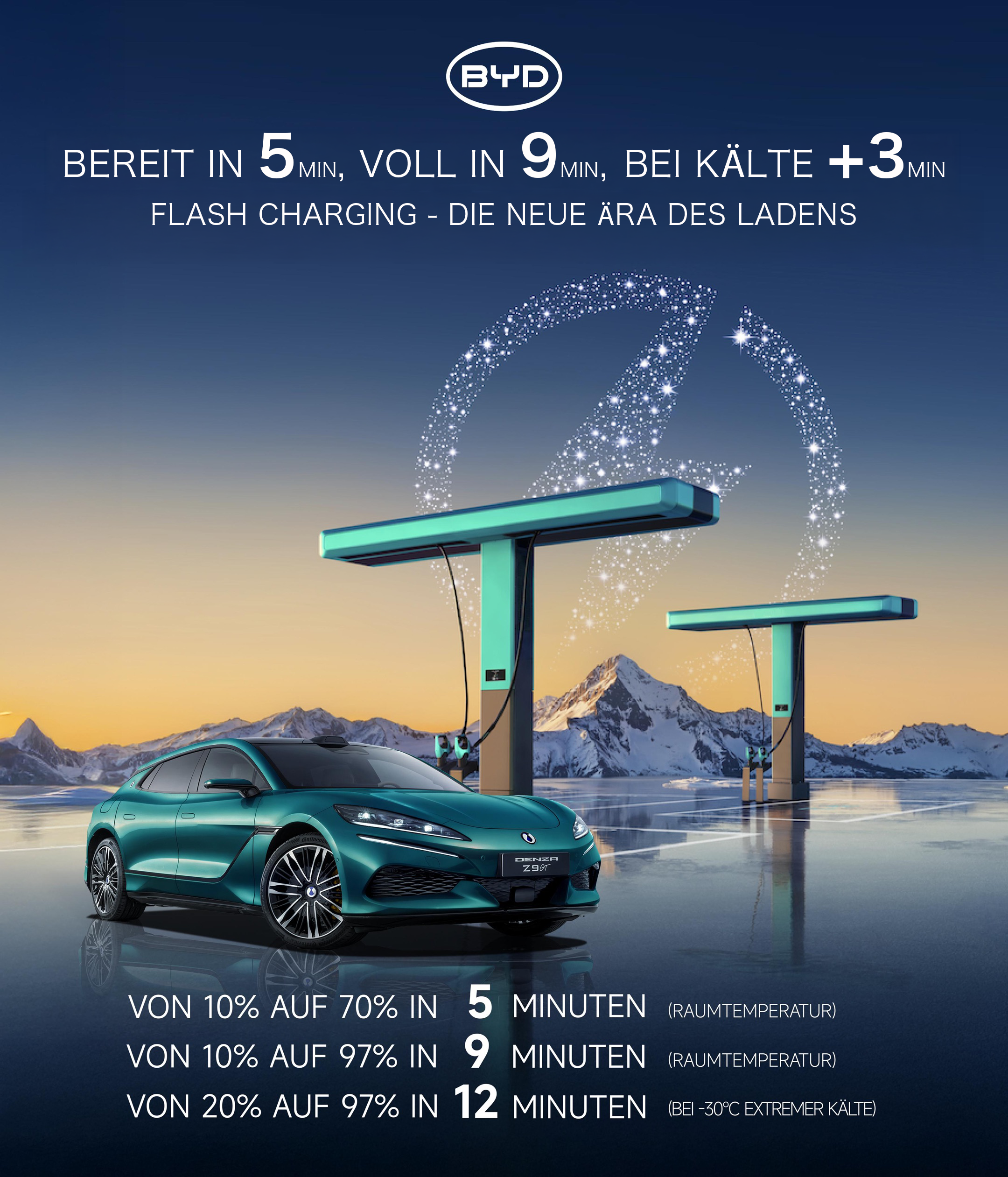 - DENZA Z9GT startet im April die FLASH-Charging-Revolution in Europa: «Bereit in 5Min. Voll in 9Mi...